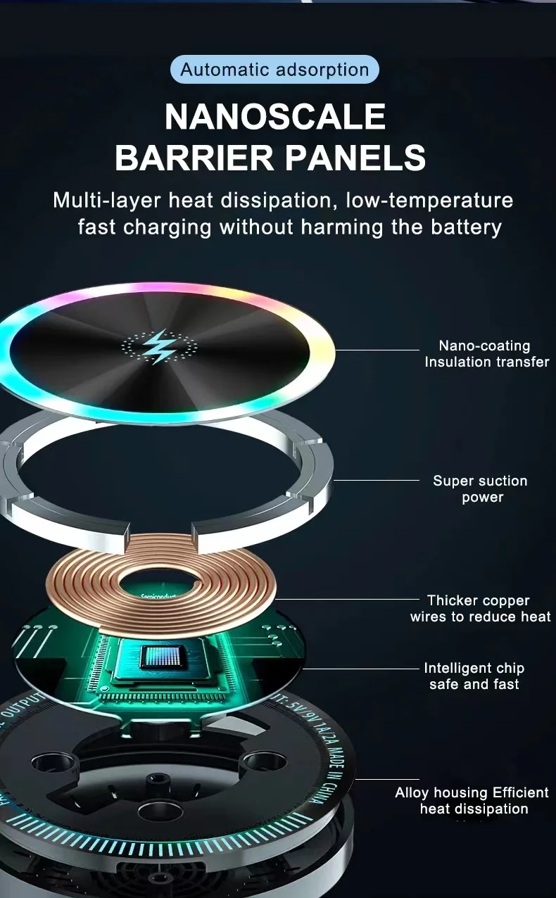 ⚡ Fast Wireless Charging – Supports up to 15W quick charging for iPhone & Samsung.